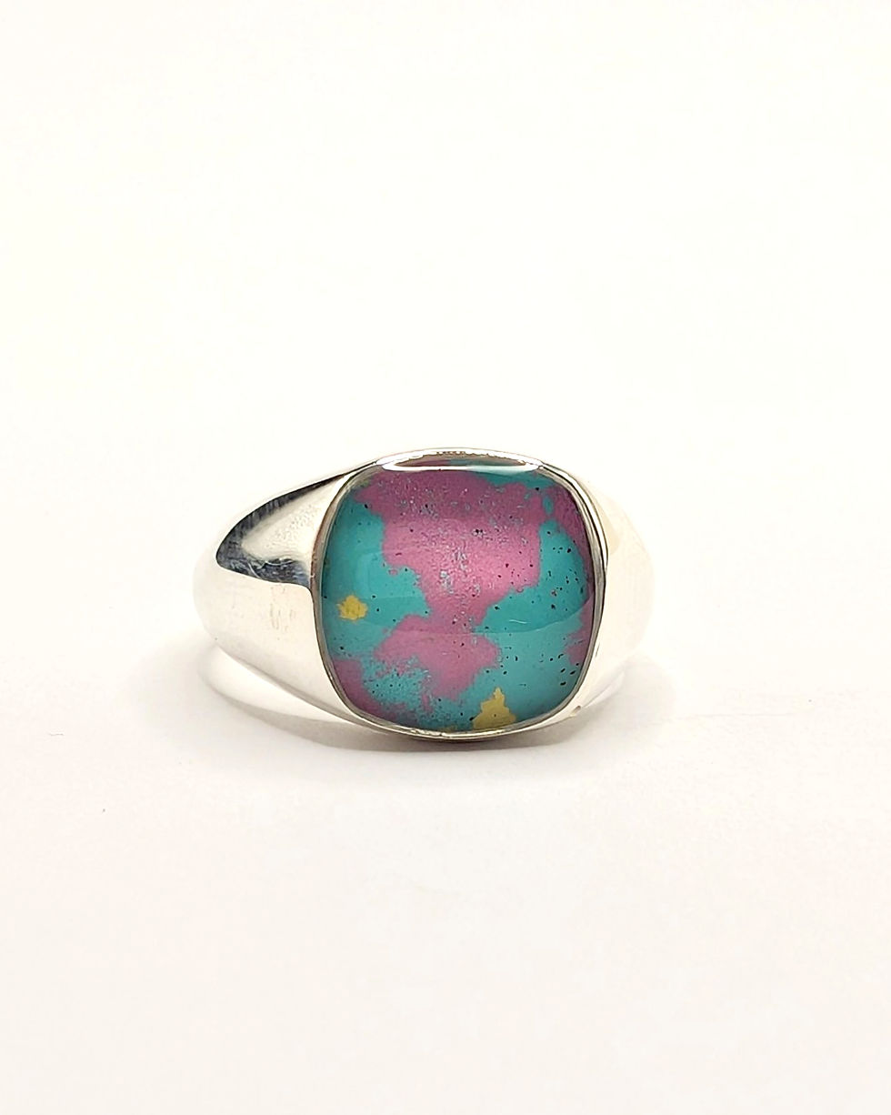 Seit 2022 verarbeiten wir dieses ungleiche Material in unserer Manufaktur zu Pieces mit zufälligen, bunten Mustern und Strukturen. Jedes Detail ist ein Teil der Berliner Street Art Geschichte, konserviert als Ohrring, Brosche, Kettenanhänger, Ring oder